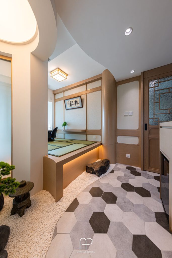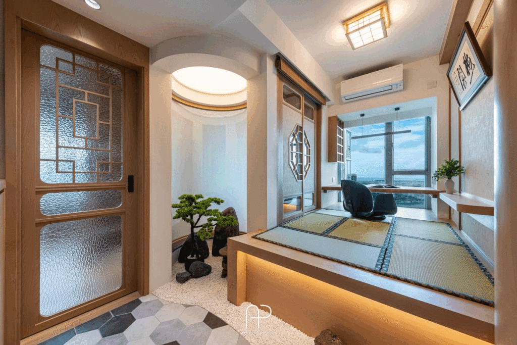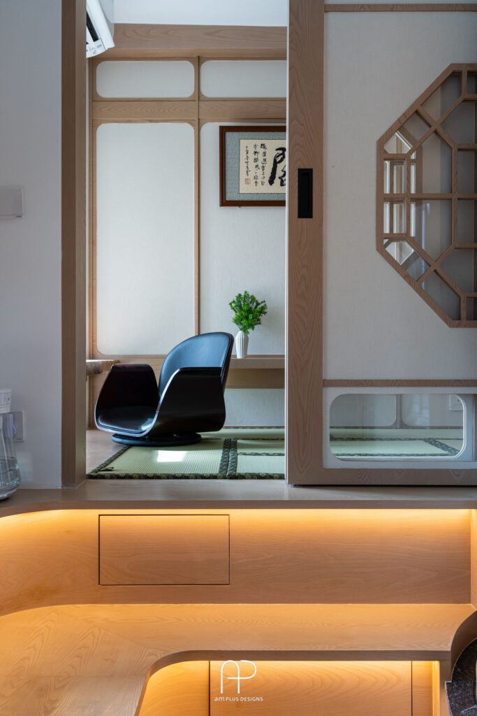 - 日式禪意元素: 空間融入榻榻米和地台設計,增添日式禪意,同時兼具收納功能。